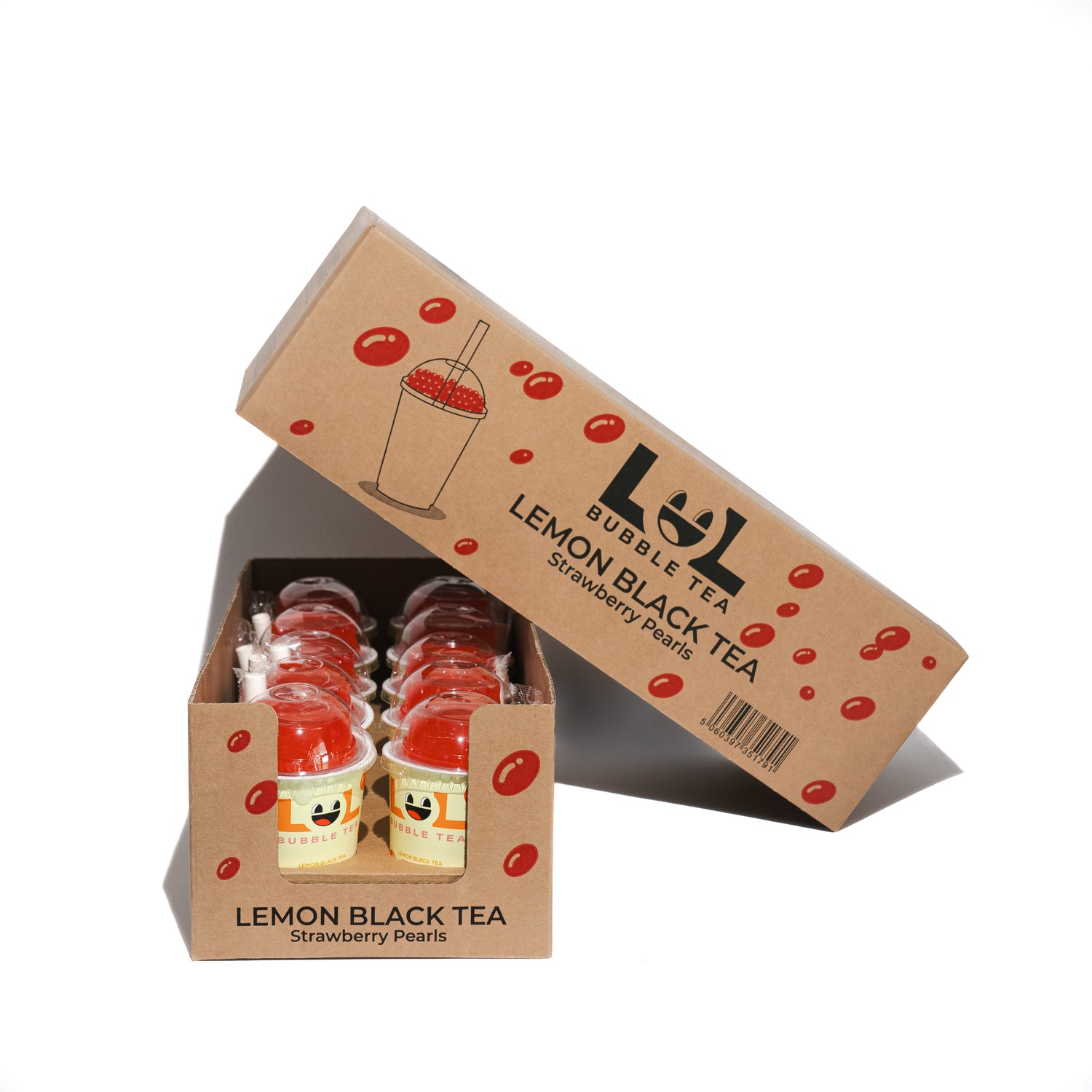 Constructed from sturdy, eco-friendly cardboard, the box securely houses 10 individual 355ml servings of bubble tea, ensuring they remain intact and protected during transit.