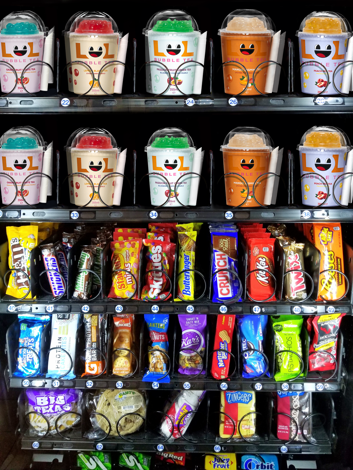 Our innovative packaging solution ensures that customers can enjoy fresh, high-quality bubble tea at their convenience, without compromising on taste or experience. No other bubble tea brand offers a true bubble tea experience with bubbles packed on the outside with such packaging solution making LOL Bubble Tea the exclusive choice for vending machine distribution.